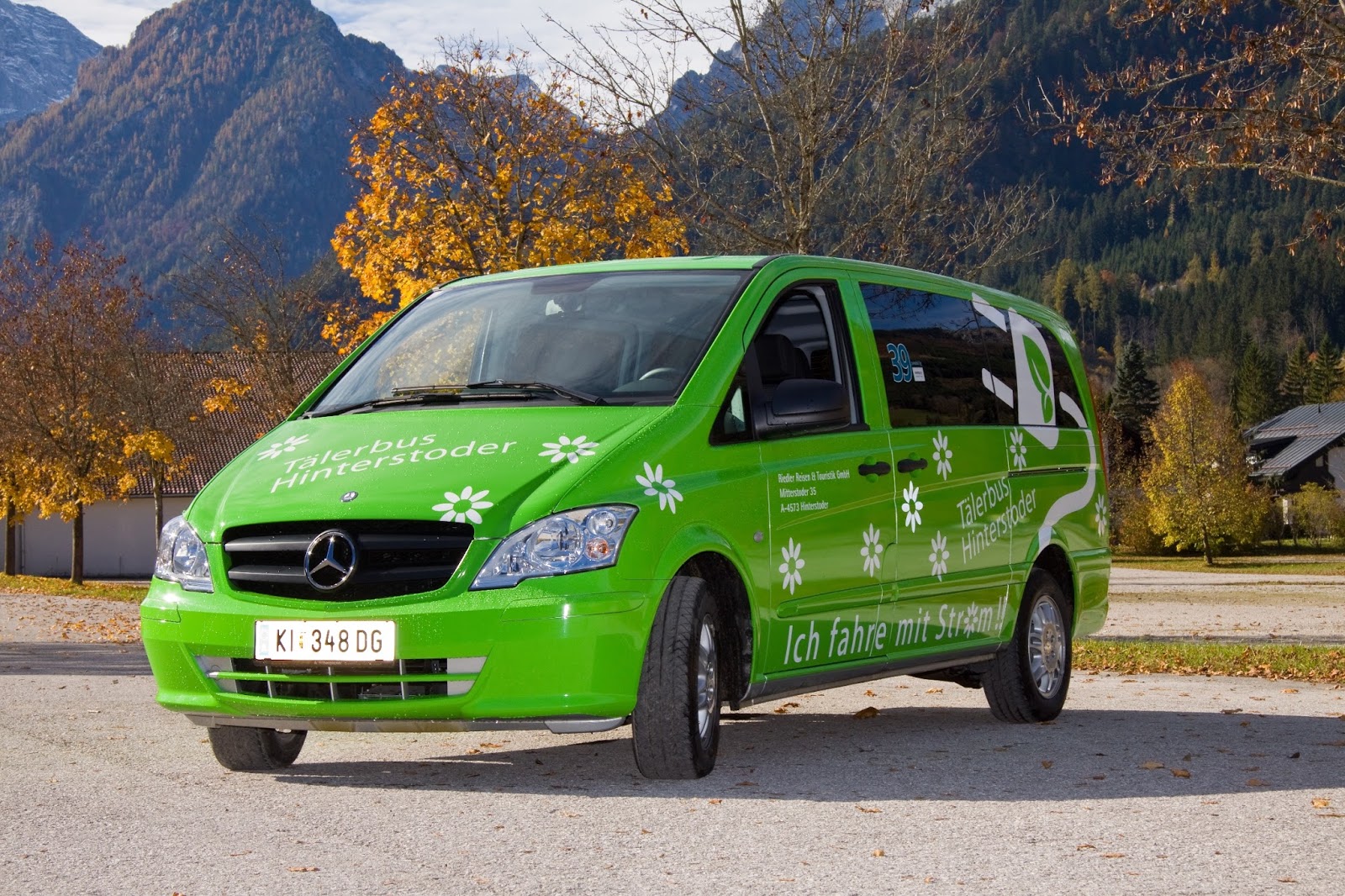 Seit August 2013 ist der Elektro-Bus Mercedes Vito (mit 7 Sitzen) als Tälerbus für die Firma Riedler Reisen im Einsatz.