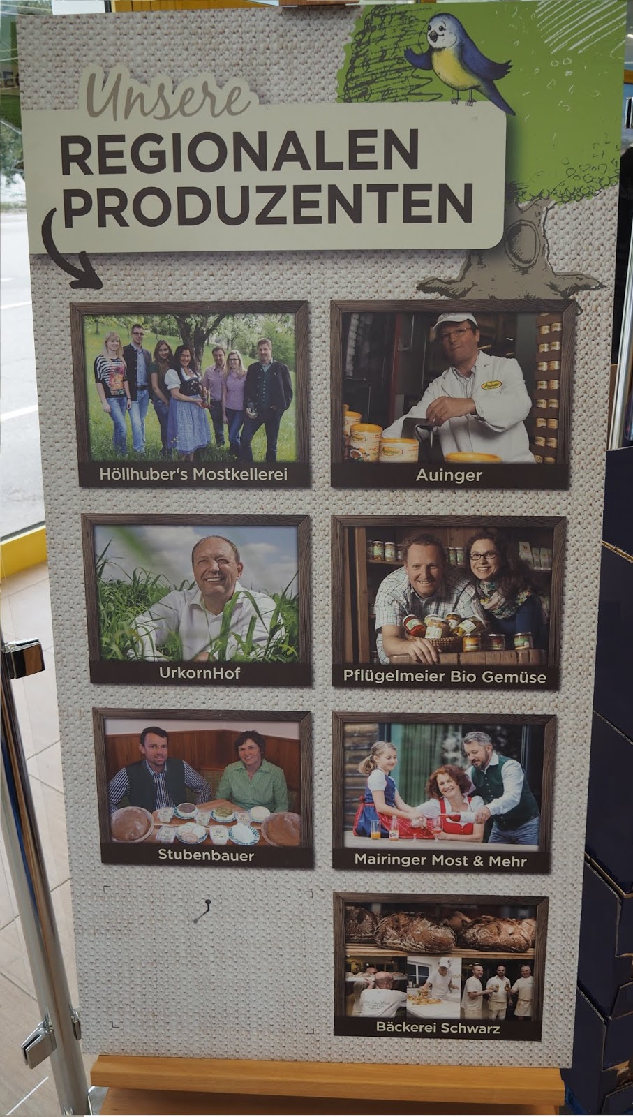 | Kennzeichnung des Regional-Regals Alle Produkte in diesem Regal stammen aus Österreich. Zusätzliche Kennzeichnungen definieren die Herkunft genauer. |