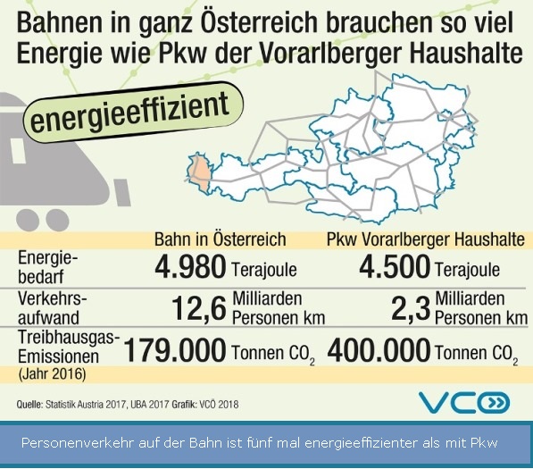 Personenverkehr auf der Bahn ist fünf mal energieeffizienter als mit Pkw